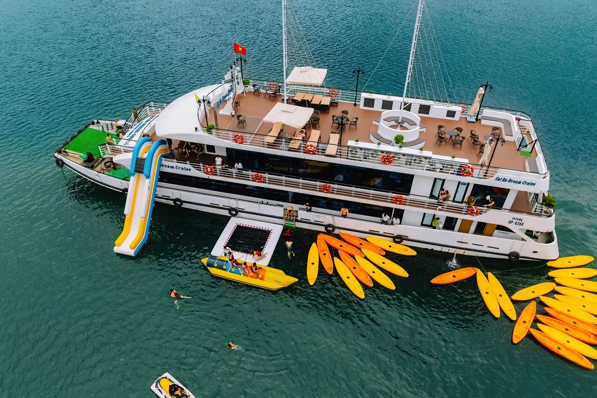 Tour vịnh Lan Hạ 1 ngày – Ba Trái Đào – Việt Hải của Hello Cát Bà Cruise là hành trình lý tưởng dành cho du khách muốn khám phá trọn vẹn vẻ đẹp vịnh Lan Hạ chỉ trong một buổi. Tour đưa bạn đi qua Làng chài Cái Bèo – một trong những làng chài cổ nhất Việt Nam, sau đó đến khu vực Ba Trái Đào với làn nước trong xanh tuyệt đẹp để chèo kayak, bơi lội, chơi cầu trượt và bể bơi lưới trên du thuyền. Buổi trưa, du khách thưởng thức bữa ăn hải sản phong phú, trước khi tiếp tục hành trình đến Làng Việt Hải – nơi được bao quanh bởi núi rừng nguyên sinh của Vườn Quốc Gia Cát Bà. Với lịch trình được thiết kế phù hợp cho gia đình và nhóm bạn, tour vịnh Lan Hạ 1 ngày mang đến trải nghiệm trọn vẹn từ nghỉ ngơi, vui chơi đến khám phá văn hoá địa phương.